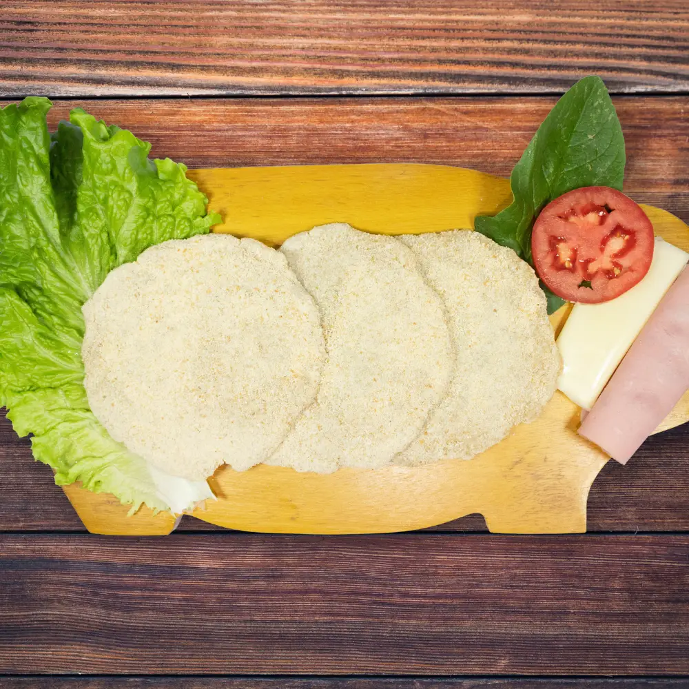 Milanesas de pollo finamente empanizadas, conservando el sabor tradicional. Frescas y fáciles de preparar, ideales para comidas familiares o en restaurantes.