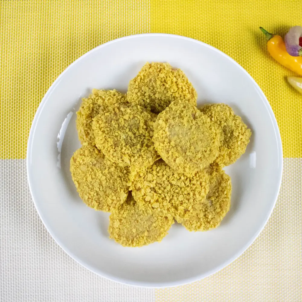 Pequeños bocados de pollo, dorados y crujientes, elaborados con carne de calidad y un toque de especias naturales. Ideales para compartir en cualquier momento.